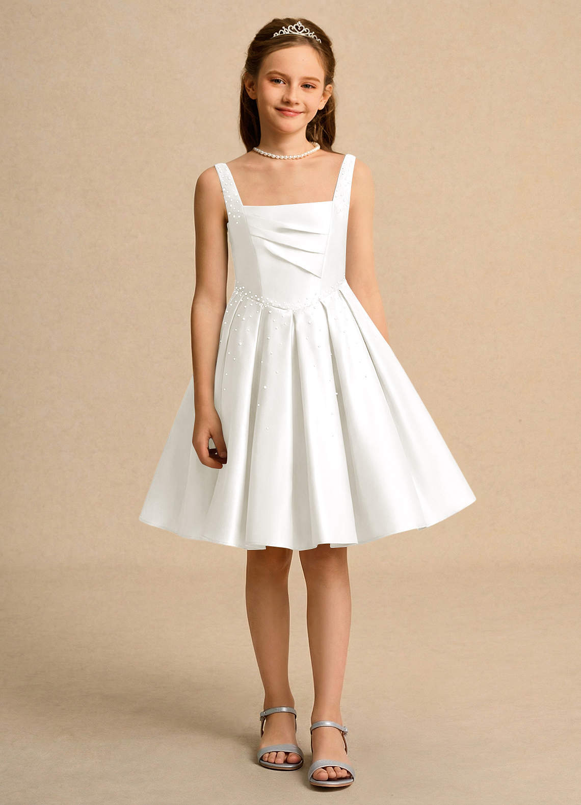 Ivory Ball-Gown Pleated Matte Satin Dress