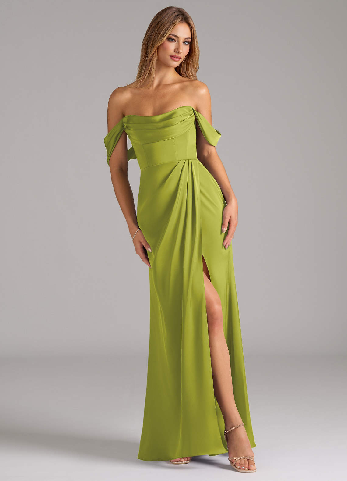 Lemongrass Mermaid Off the Shoulder Stretch Satin Convertible Dress