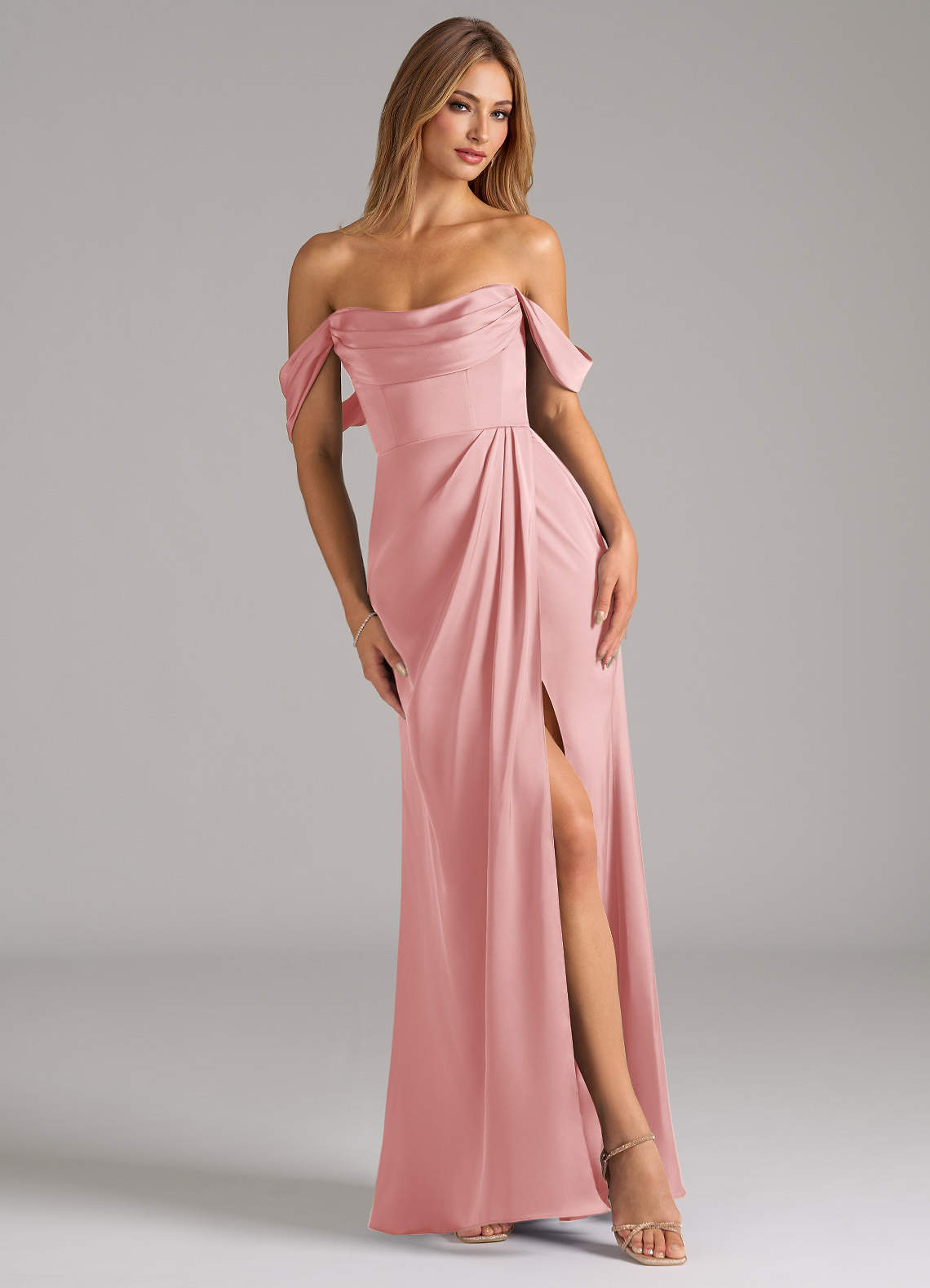 Powder Pink Mermaid Off the Shoulder Stretch Satin Convertible Dress