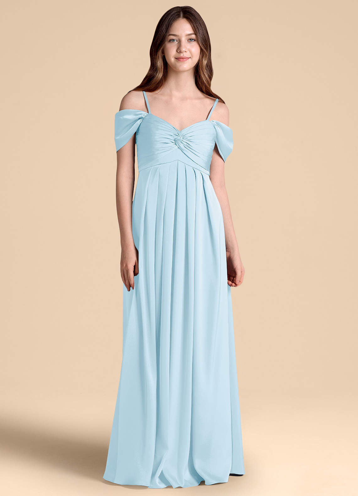 Sky Blue A-Line Off the Shoulder Stretch Satin Dress