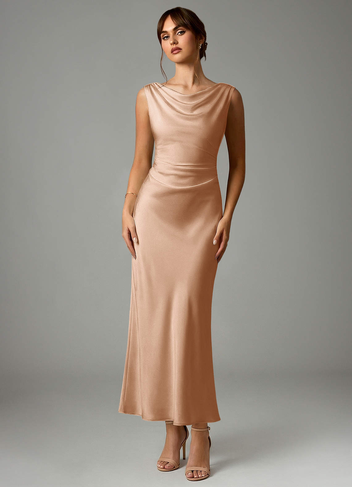 Azazie Kieryn Bridesmaid Dresses English Rose Mermaid Pleated Stretch Satin Dress image1