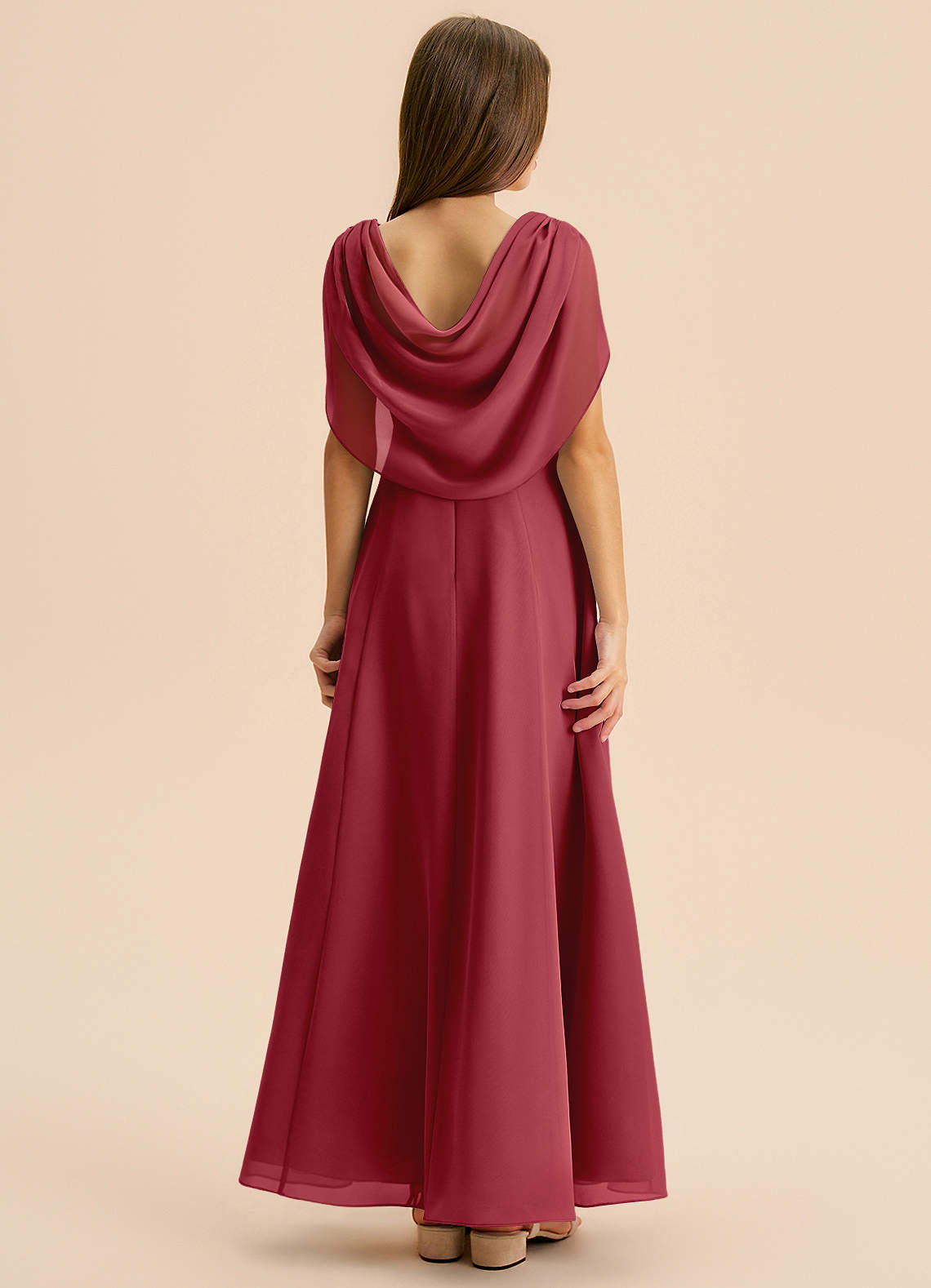 Pomegranate A-Line Pleated Chiffon Dress