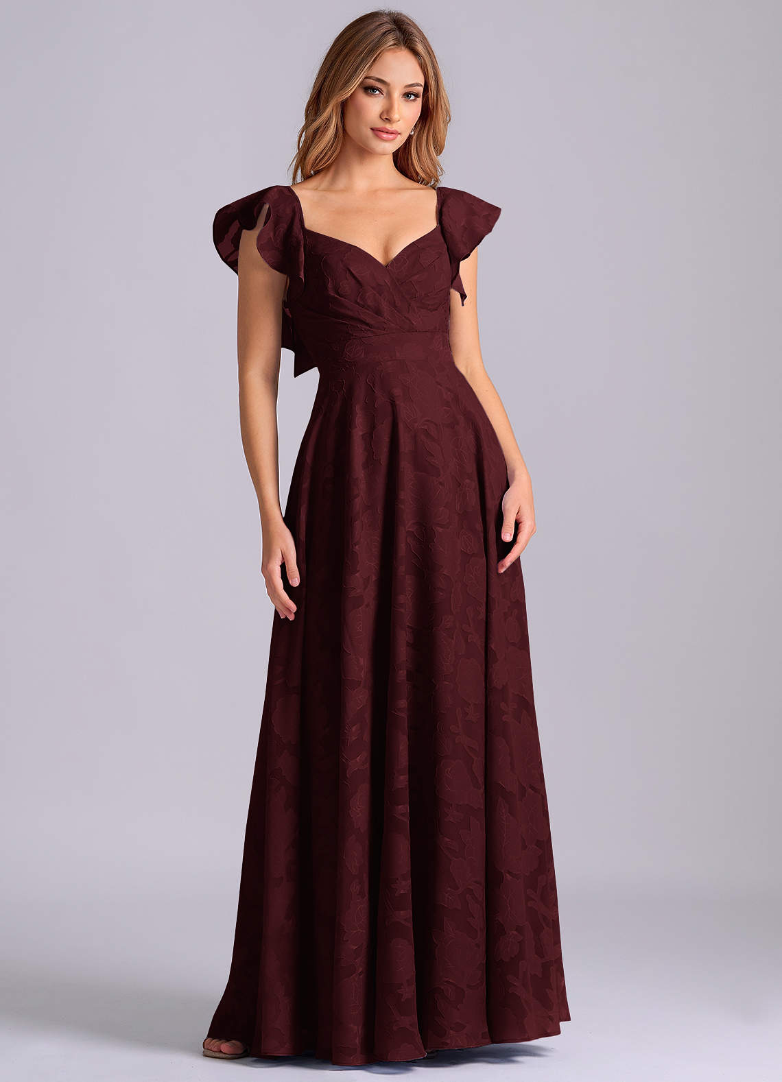 Cabernet A-Line Sweetheart Neckline Floral Burnout Dress