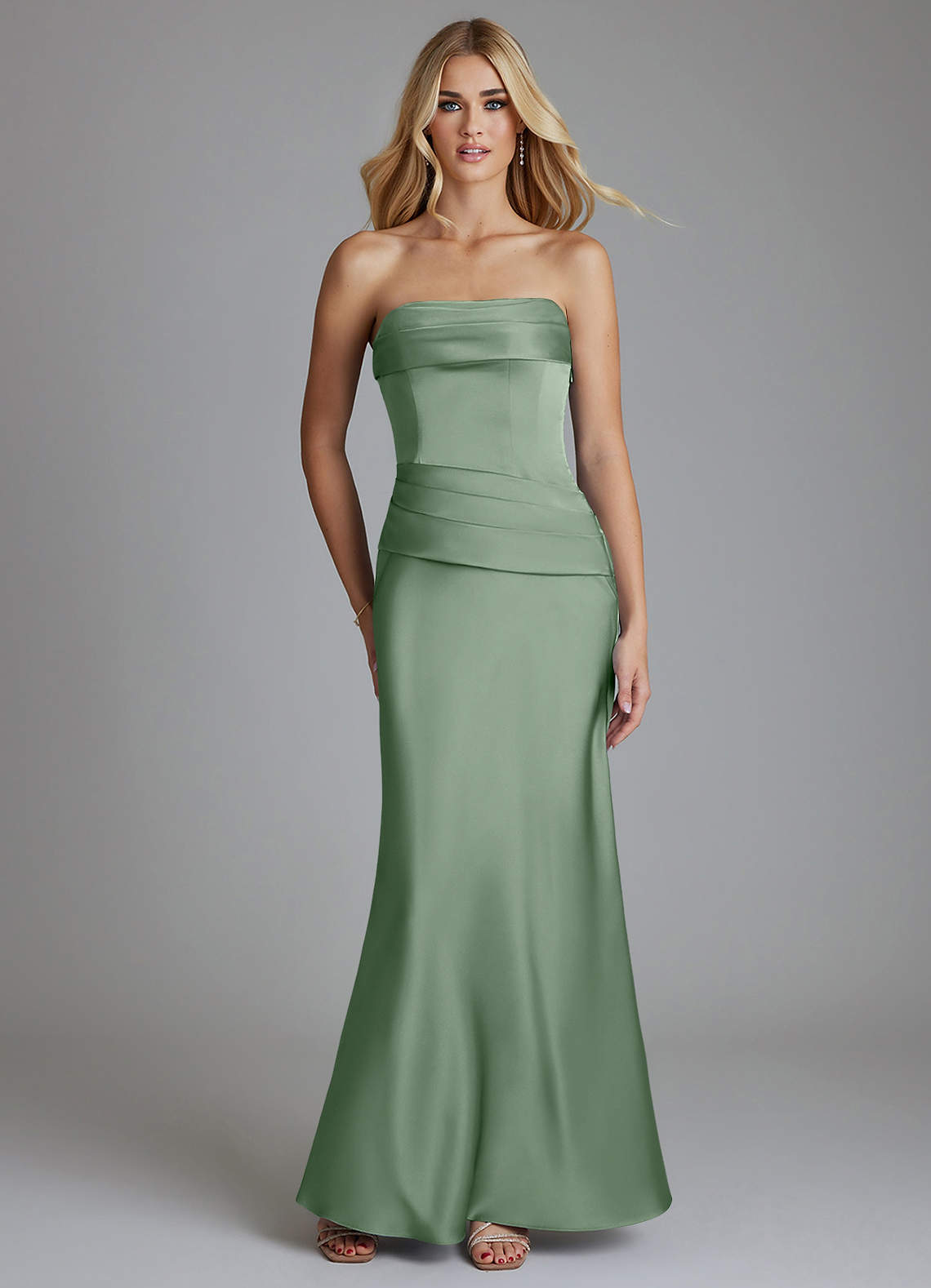 Dusty Rose Sheath Pleated Stretch Satin Dress