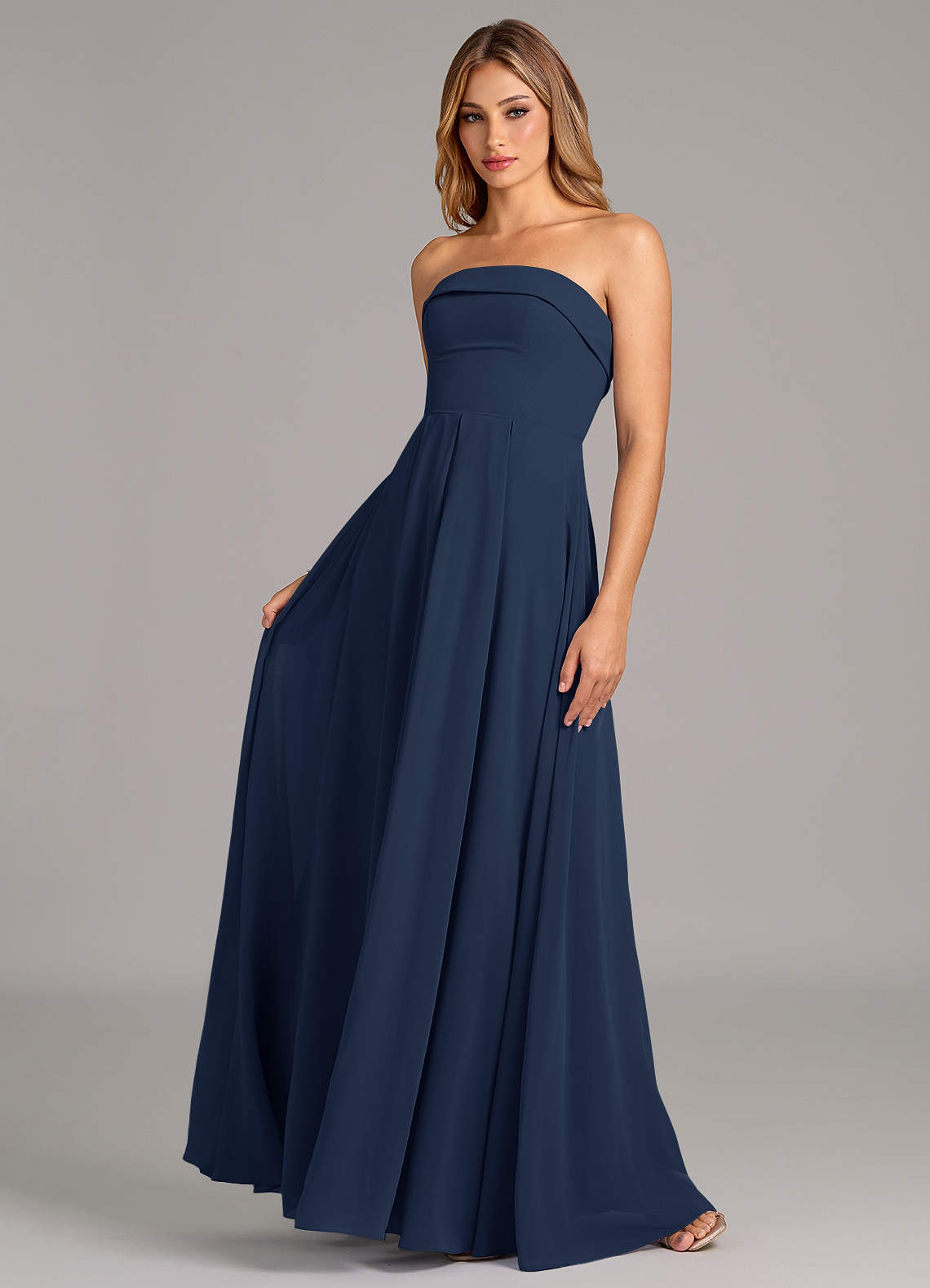 Dark Navy A-Line Strapless Chiffon Convertible Dress