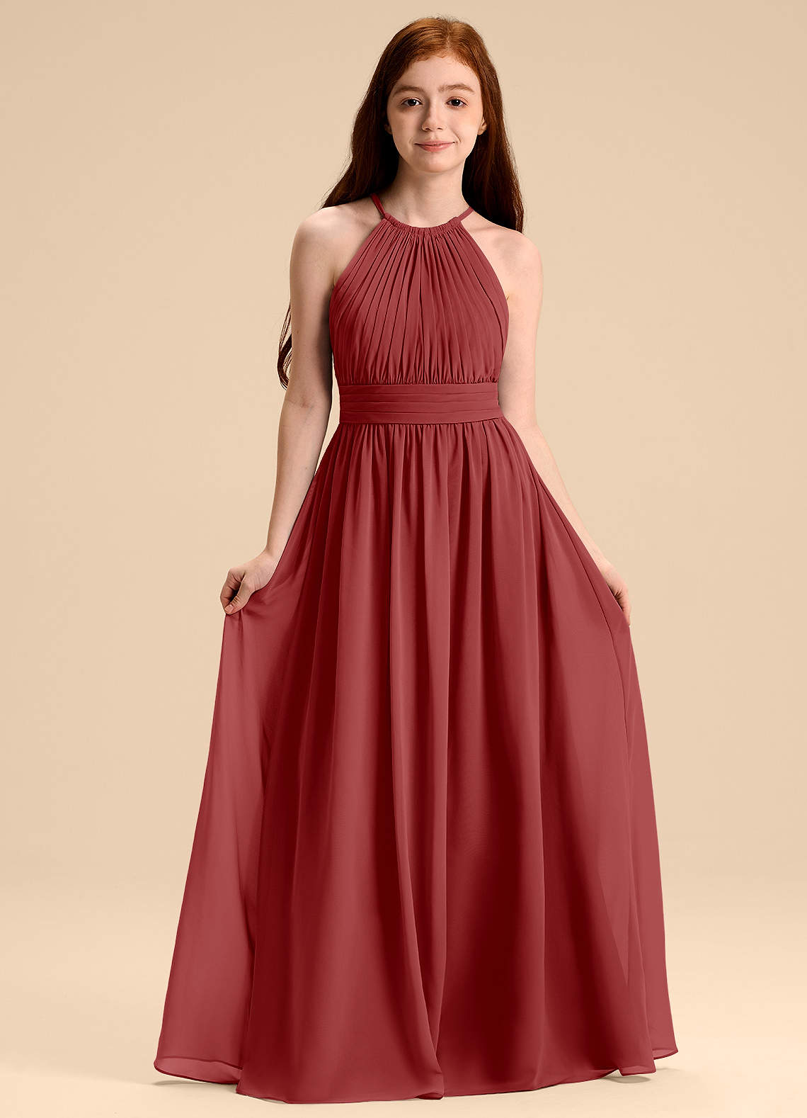 Rust A-Line Pleated Chiffon Dress
