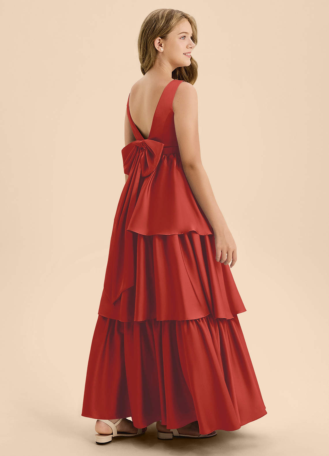 Rust A-Line Bow Stretch Satin Dress
