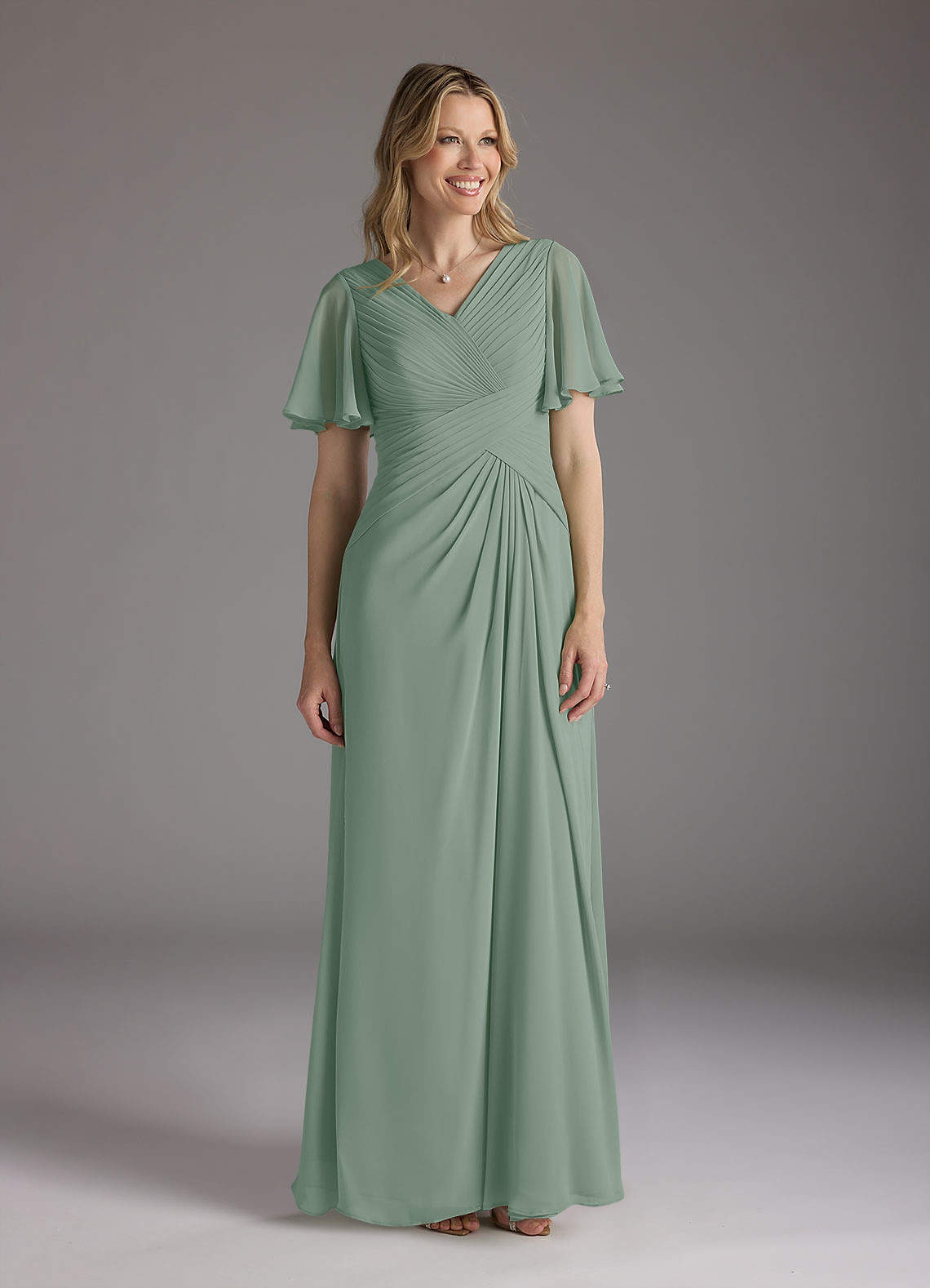 Silver Sage A-Line V-Neck Ruched Chiffon Dress