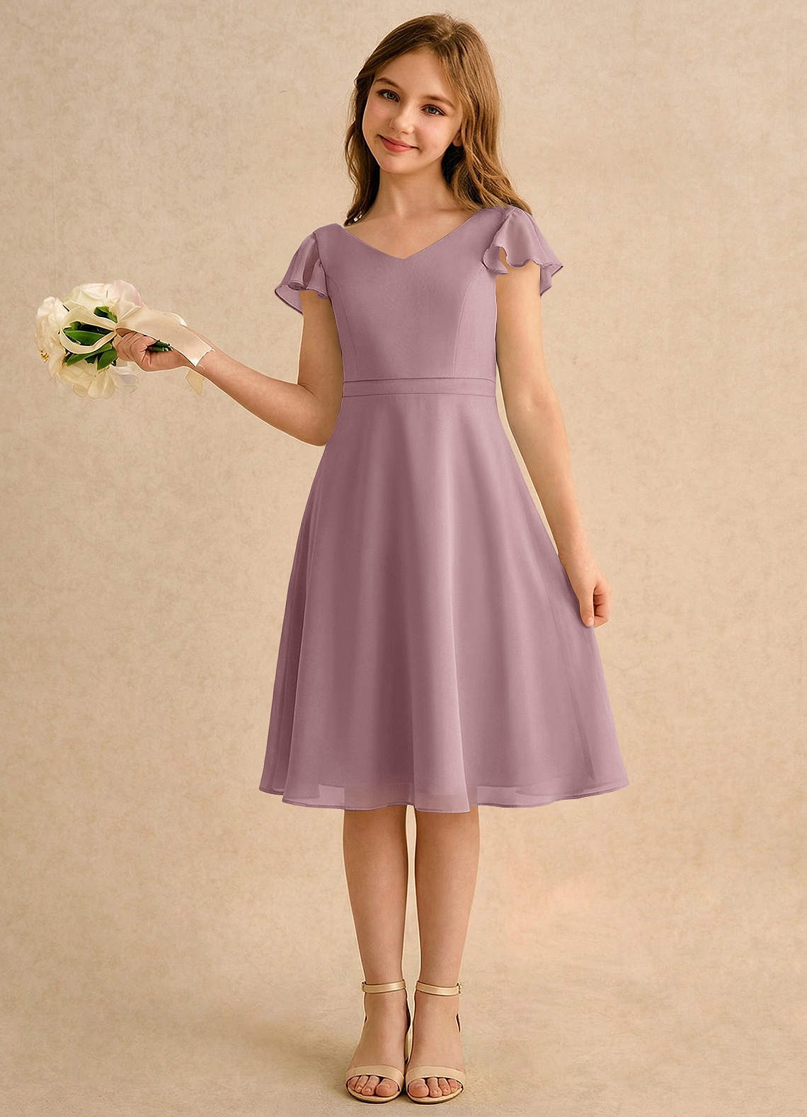Dusty Rose A-Line with Sleeves Chiffon Dress