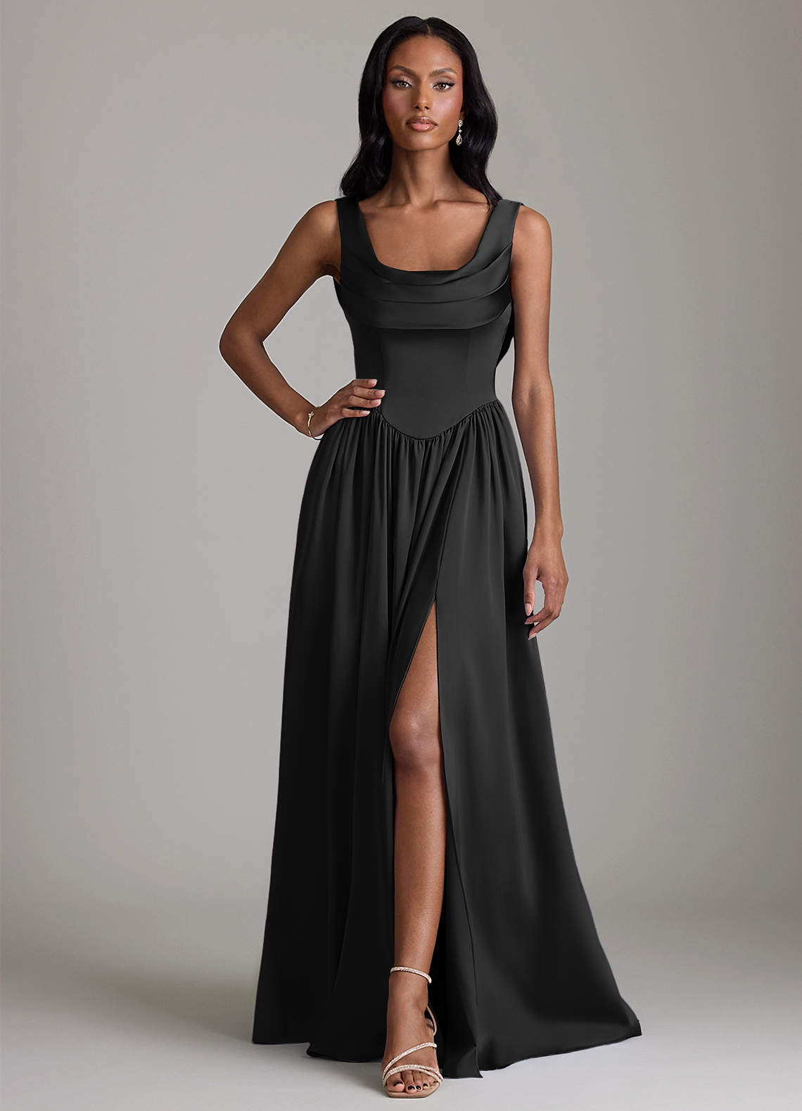 Black A-Line with Pockets Stretch Satin Dress