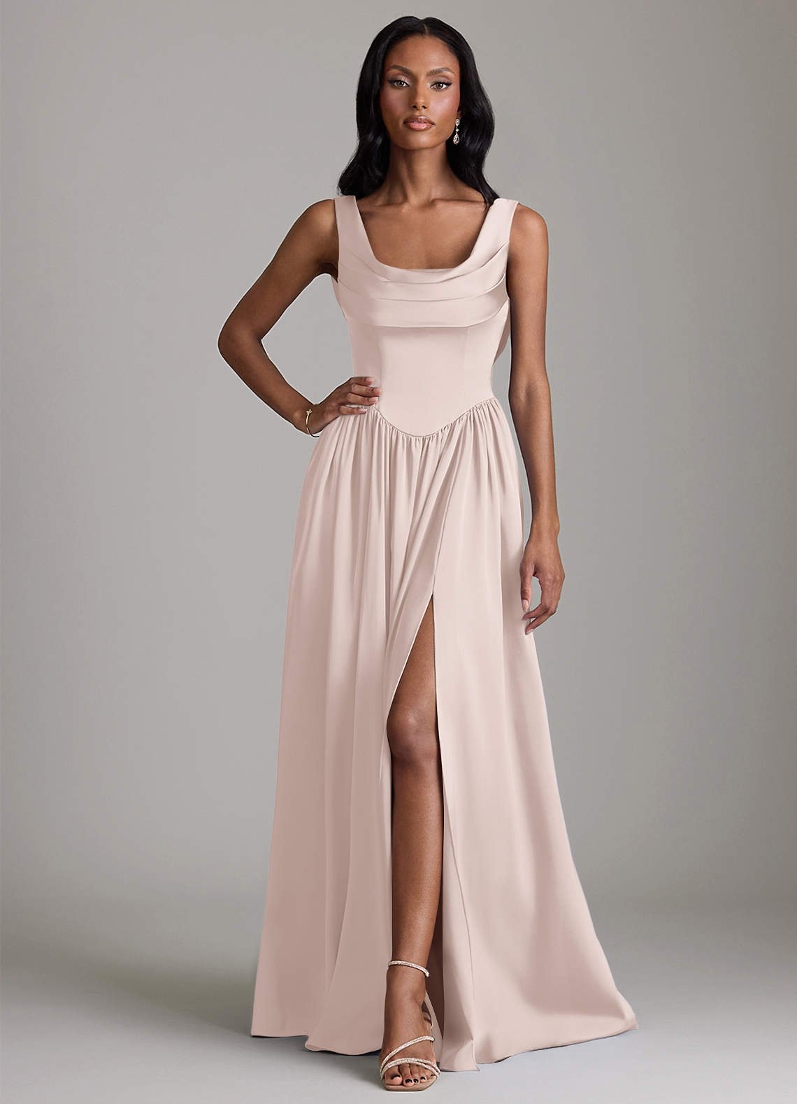 Blushing Pink A-Line with Pockets Stretch Satin Dress
