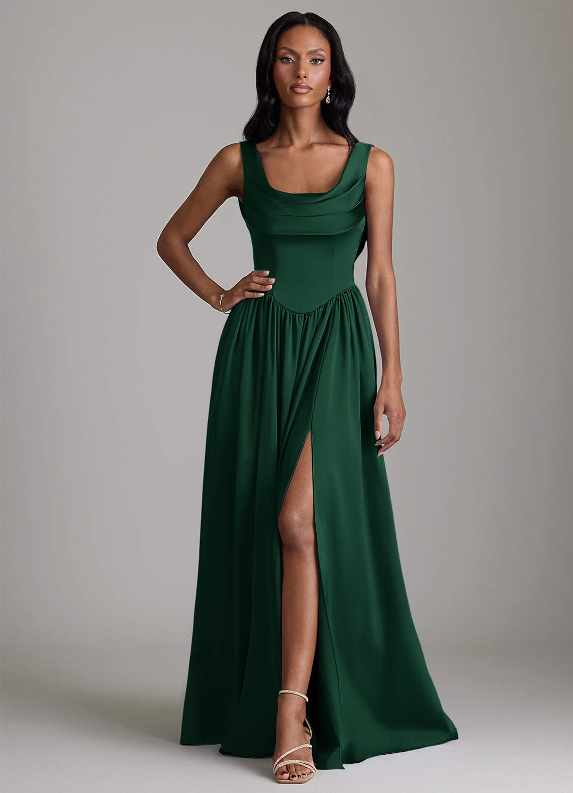 Dark Green A-Line with Pockets Stretch Satin Dress