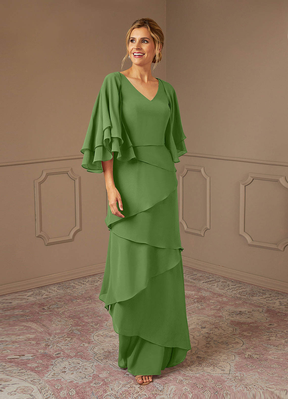 Basil A-Line V-Neck Chiffon Dress