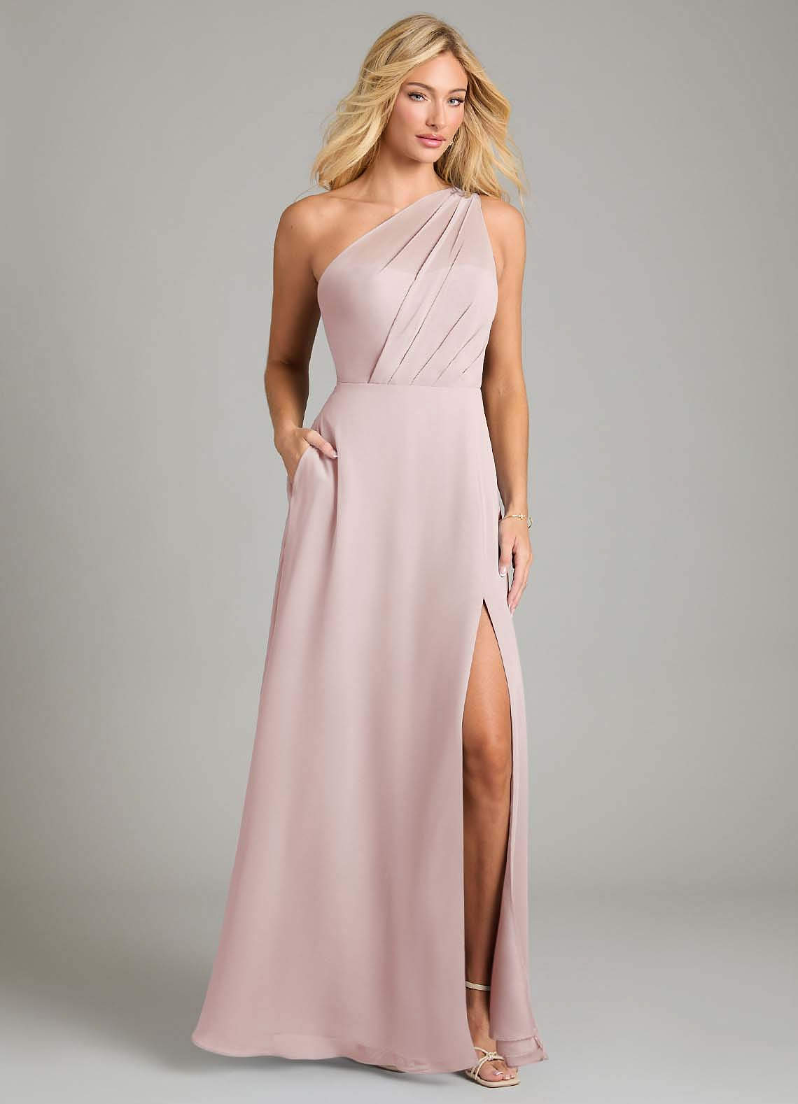 Blushing Pink A-Line One Shoulder Chiffon Dress