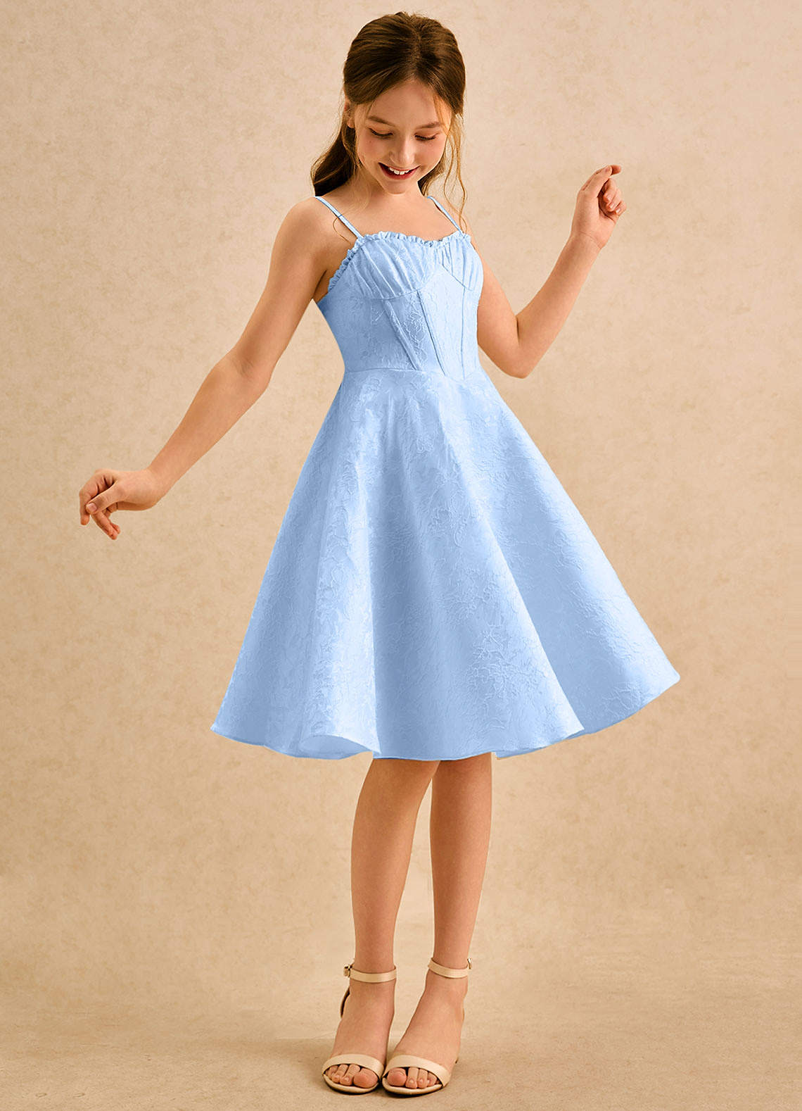 Sky Blue A-Line Sweetheart Neckline Floral Jacquard Dress