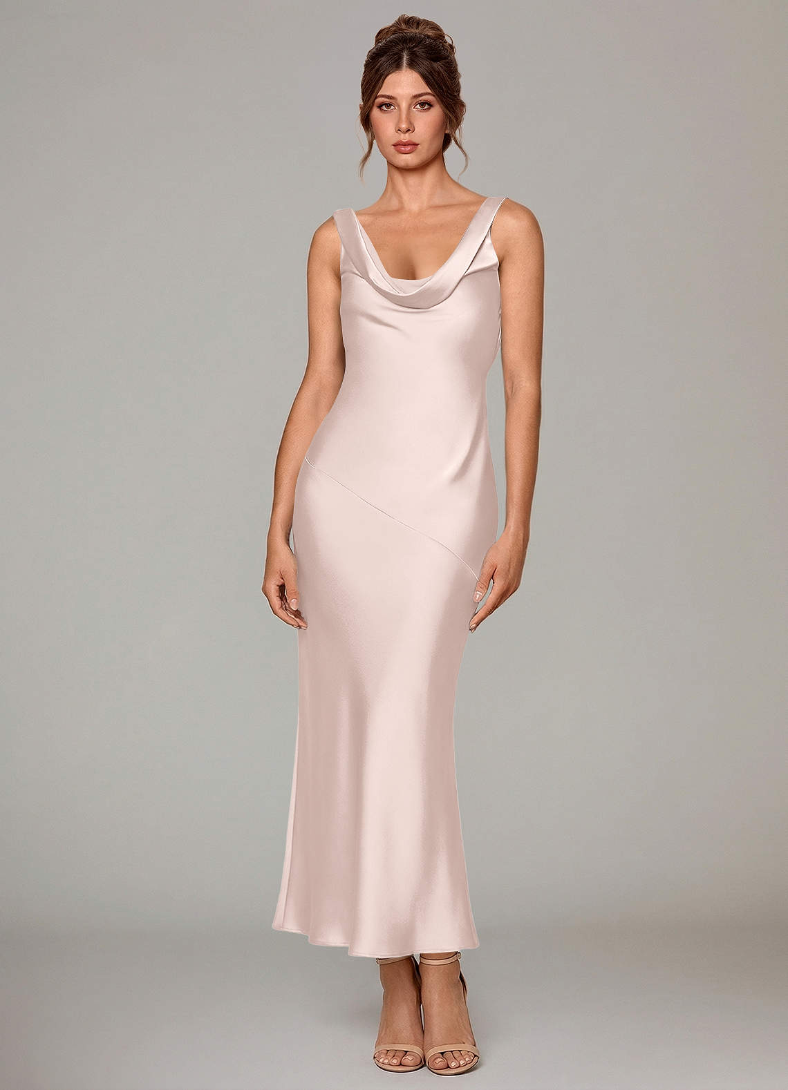 Blushing Pink Mermaid Pleated Stretch Satin Dress