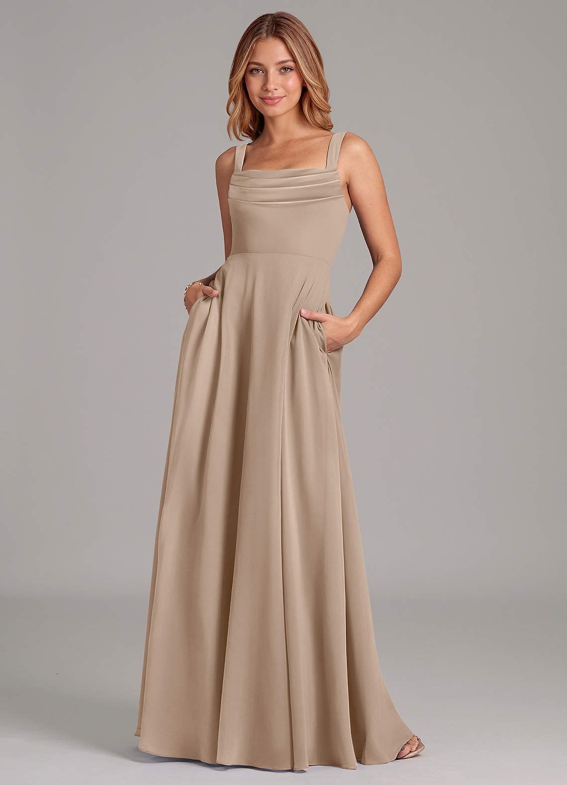 Taupe A-Line Pleated Chiffon Dress
