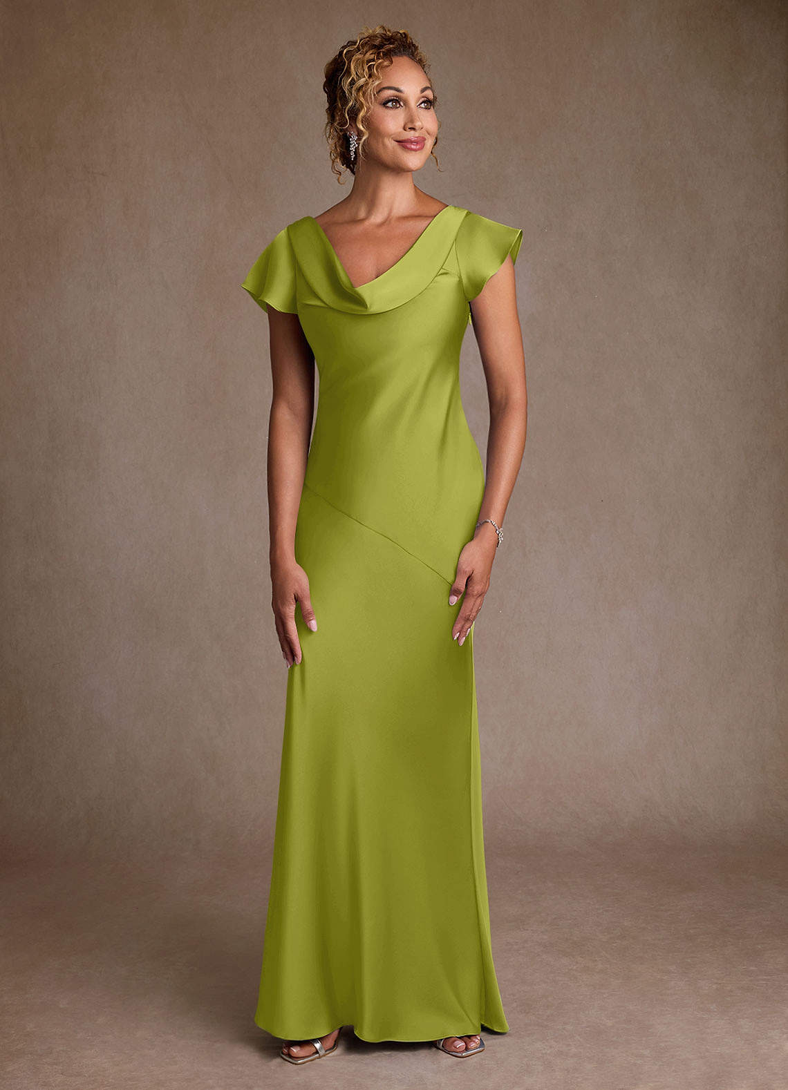 Lemongrass Mermaid Pleated Stretch Satin Dress