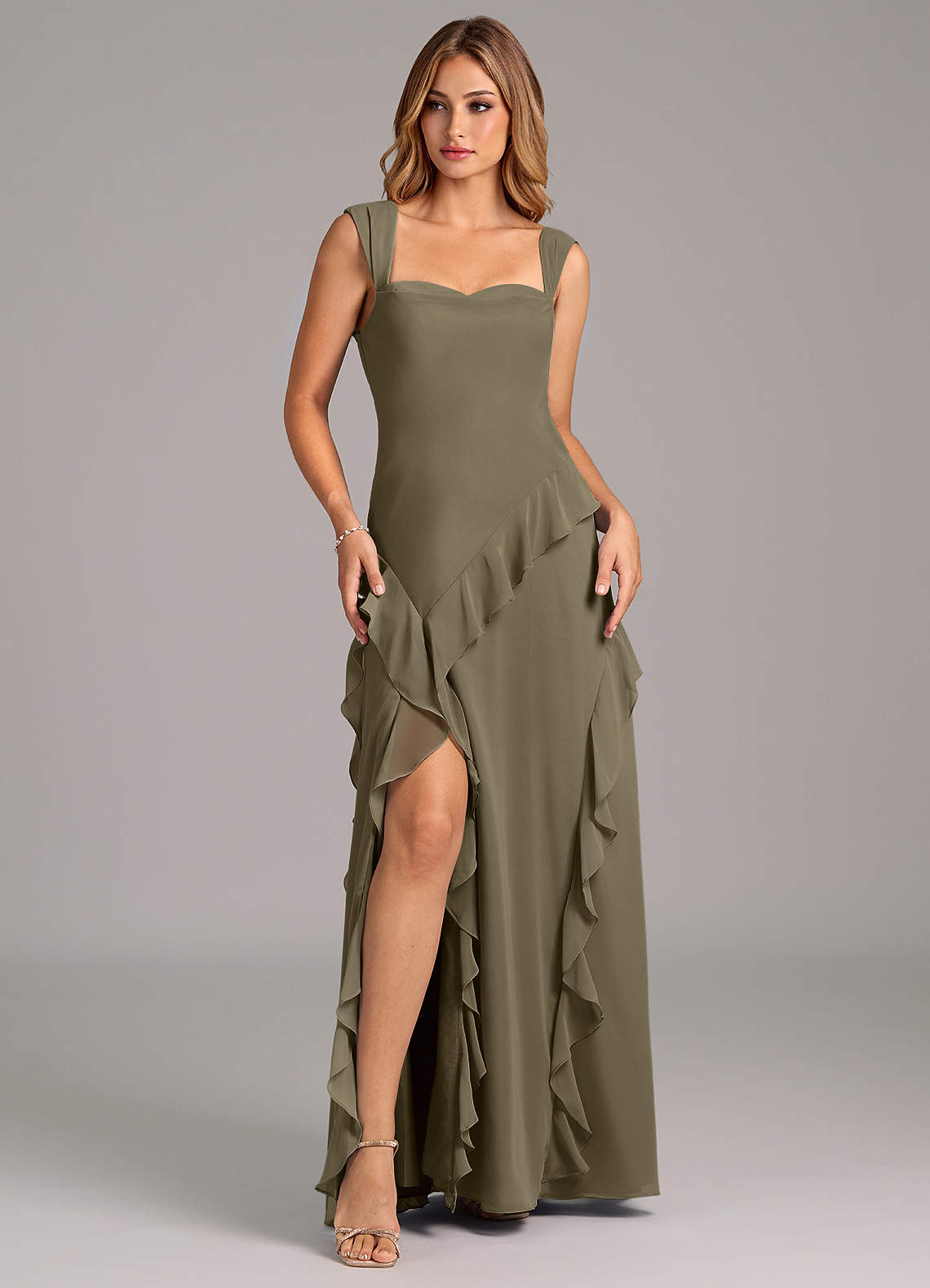 Willow Green A-Line Sweetheart Neckline Chiffon Dress