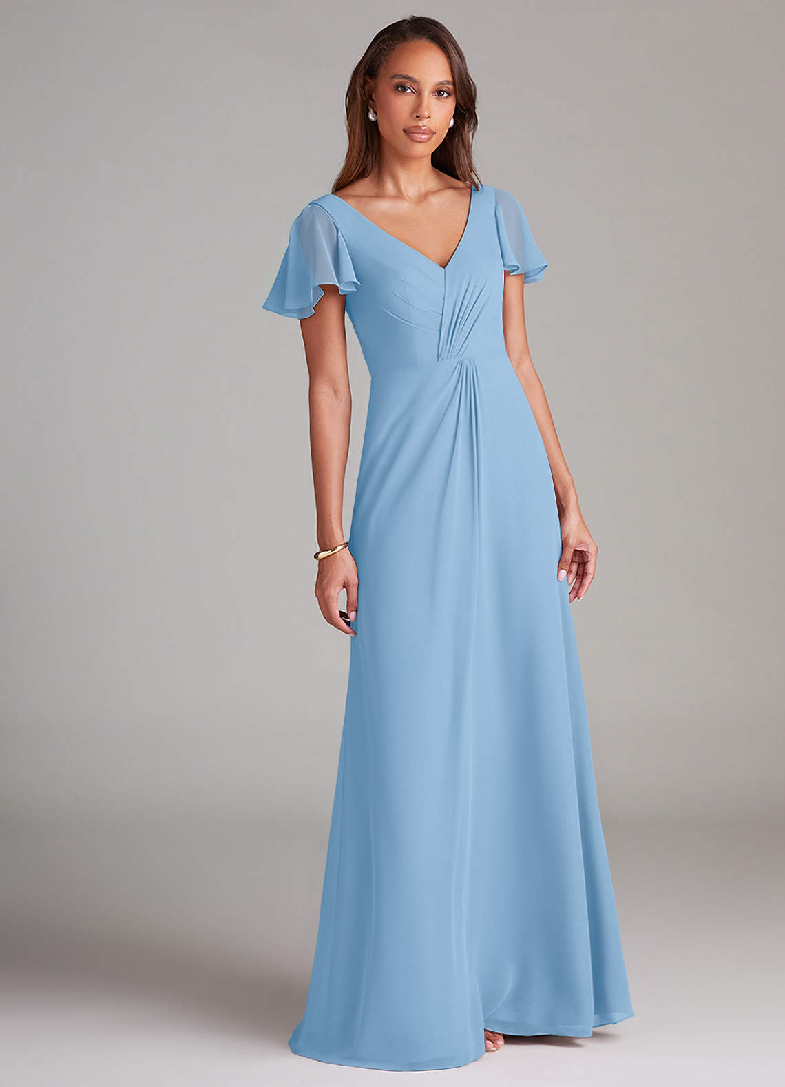 Powder Blue A-Line Ruched Chiffon Dress