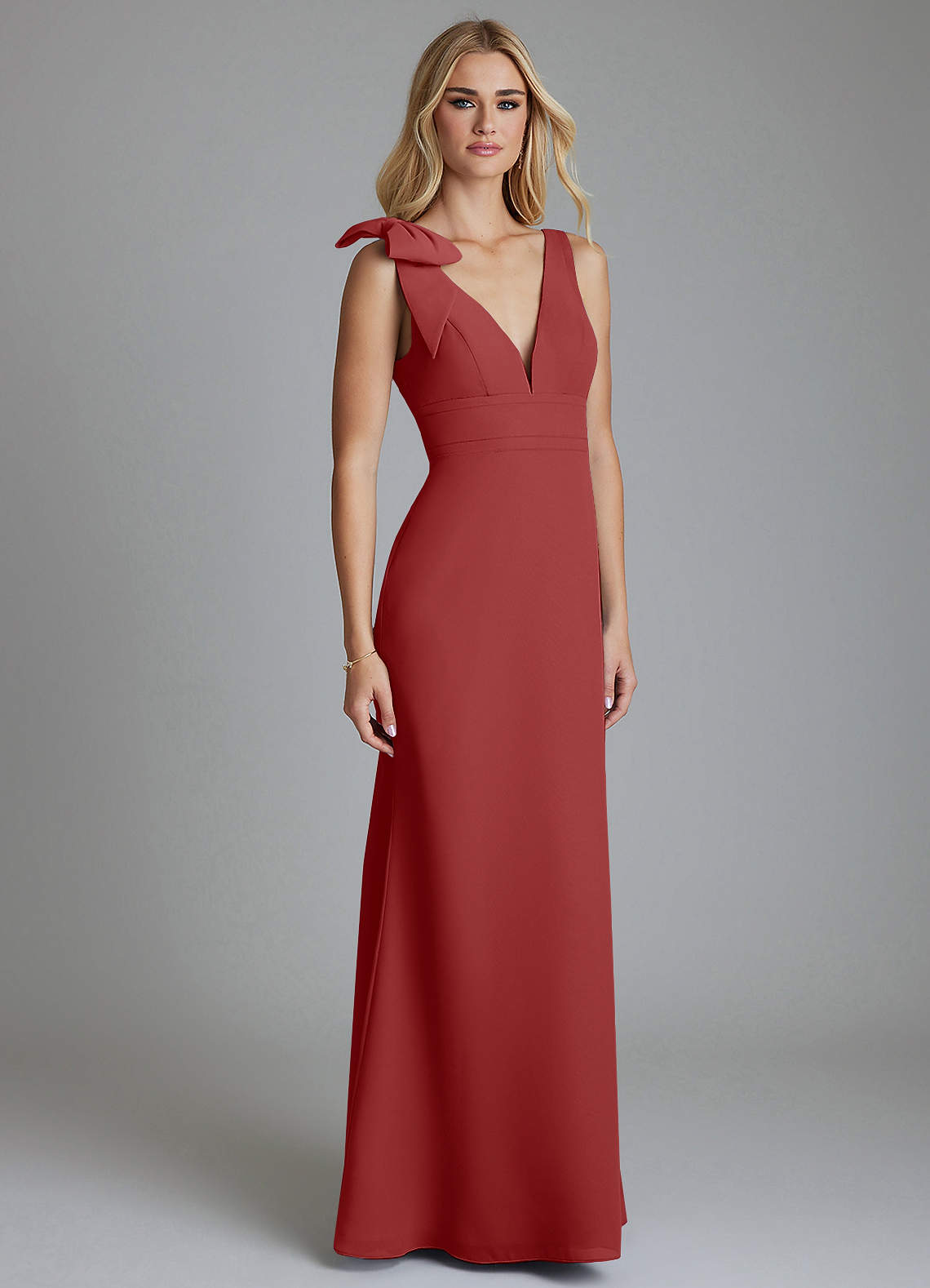 Rust Sheath Bow Chiffon Dress