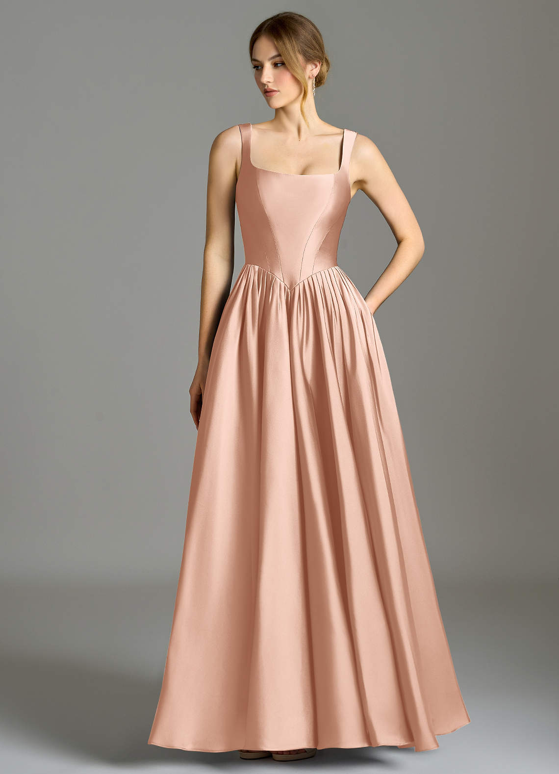 Rose Gold A-Line Pleated Stretch Satin Dress