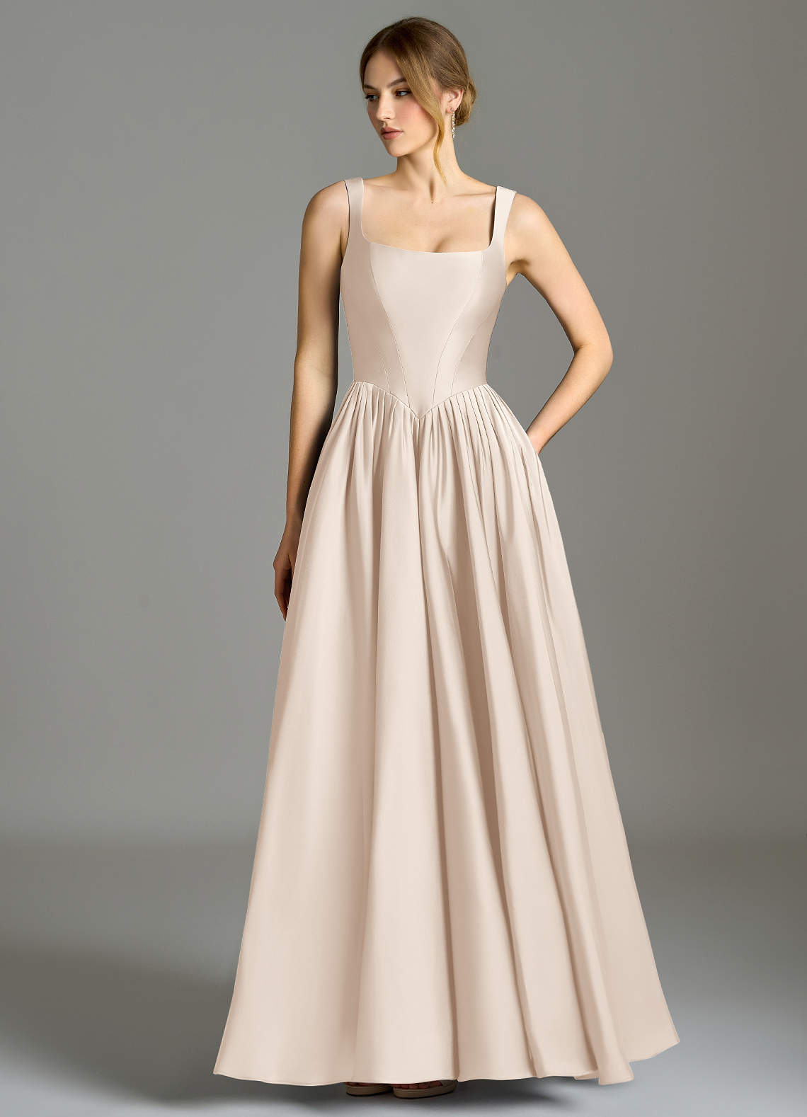 White Alabaster A-Line Pleated Stretch Satin Dress