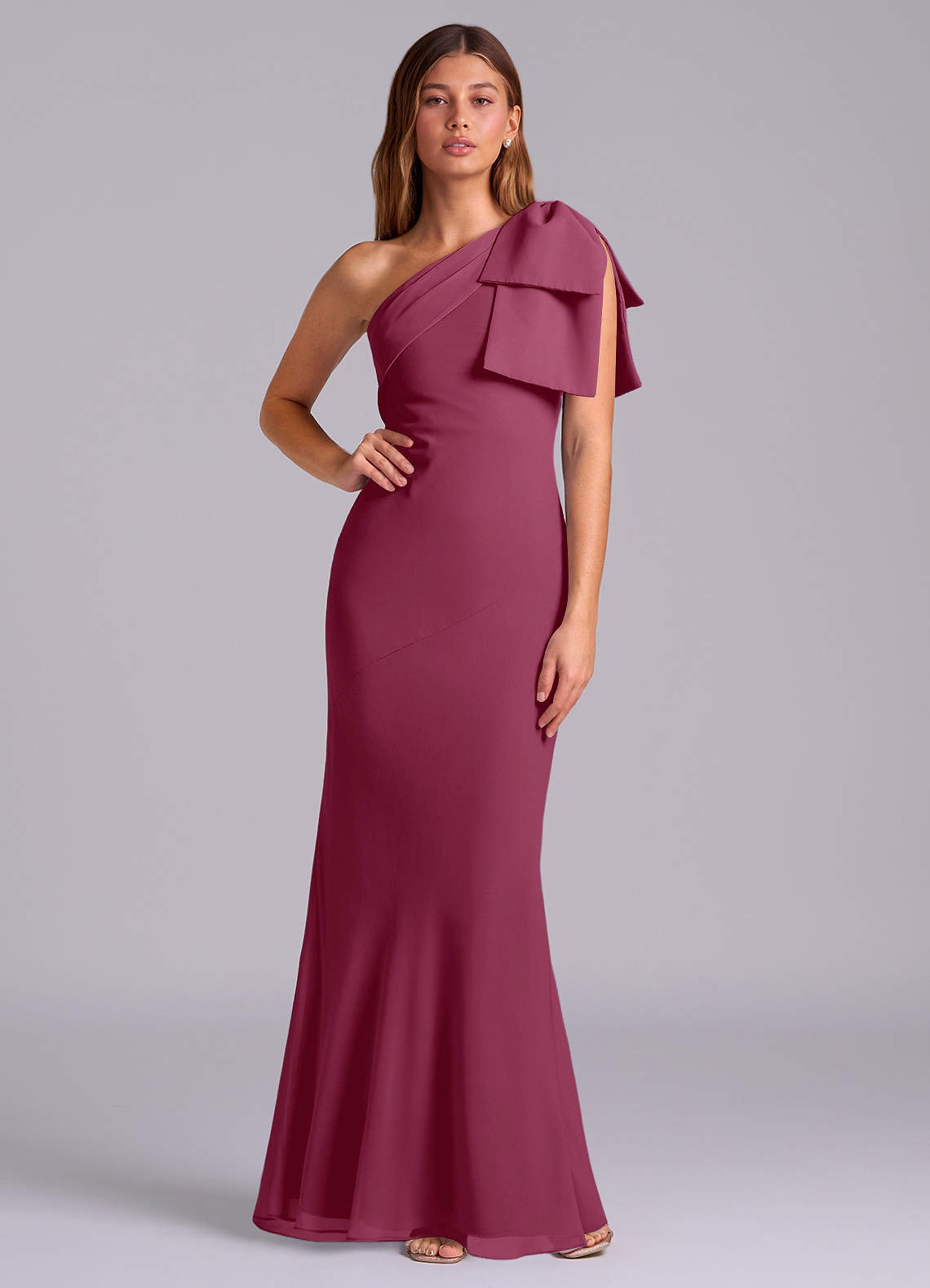 Mulberry Mermaid One Shoulder Chiffon Dress