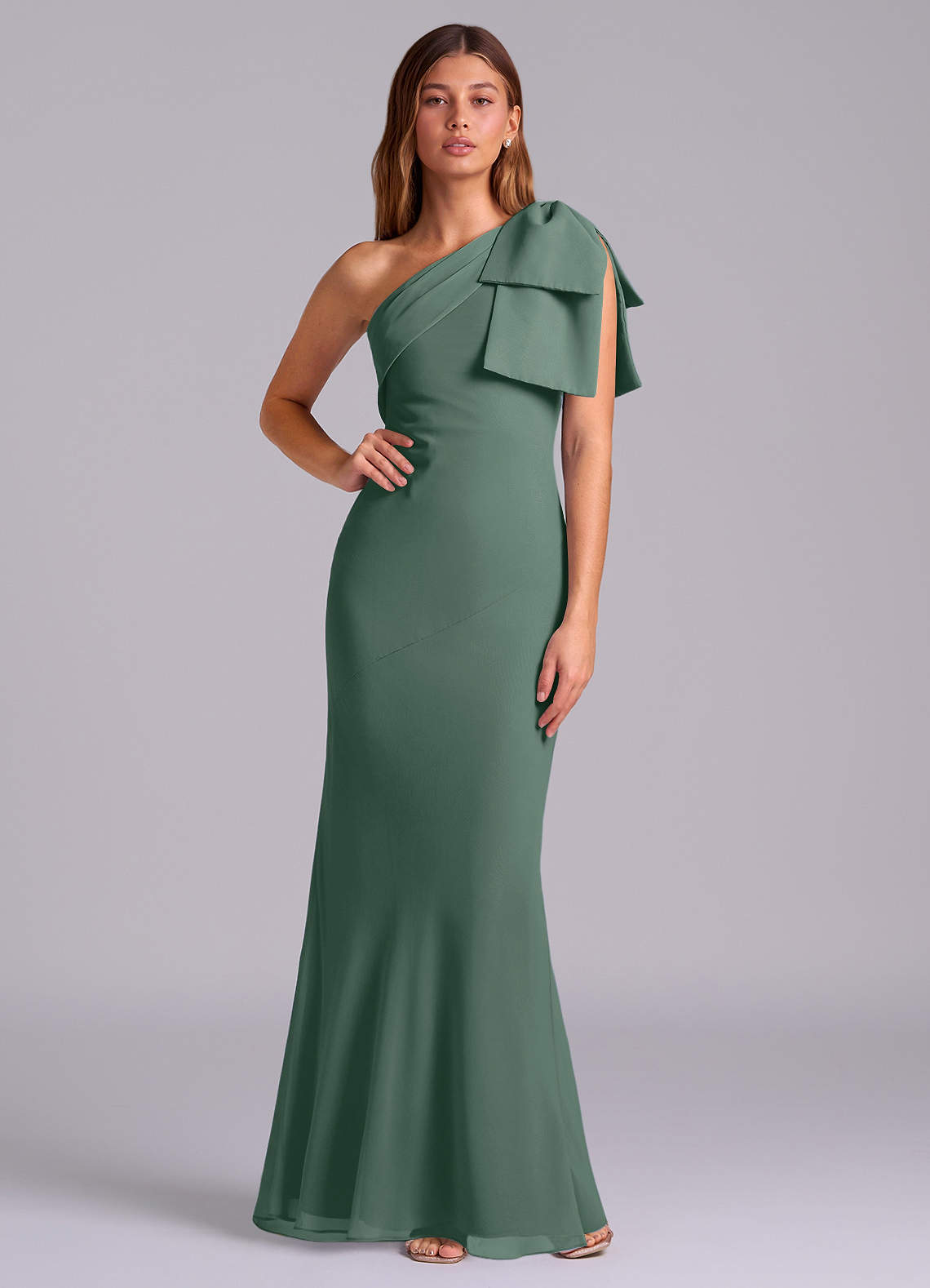 Sea Moss Mermaid One Shoulder Chiffon Dress