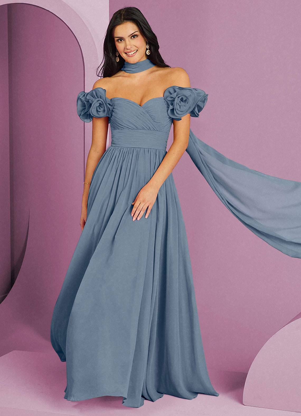 Twilight A-Line Off the Shoulder Chiffon Convertible Dress Twilight