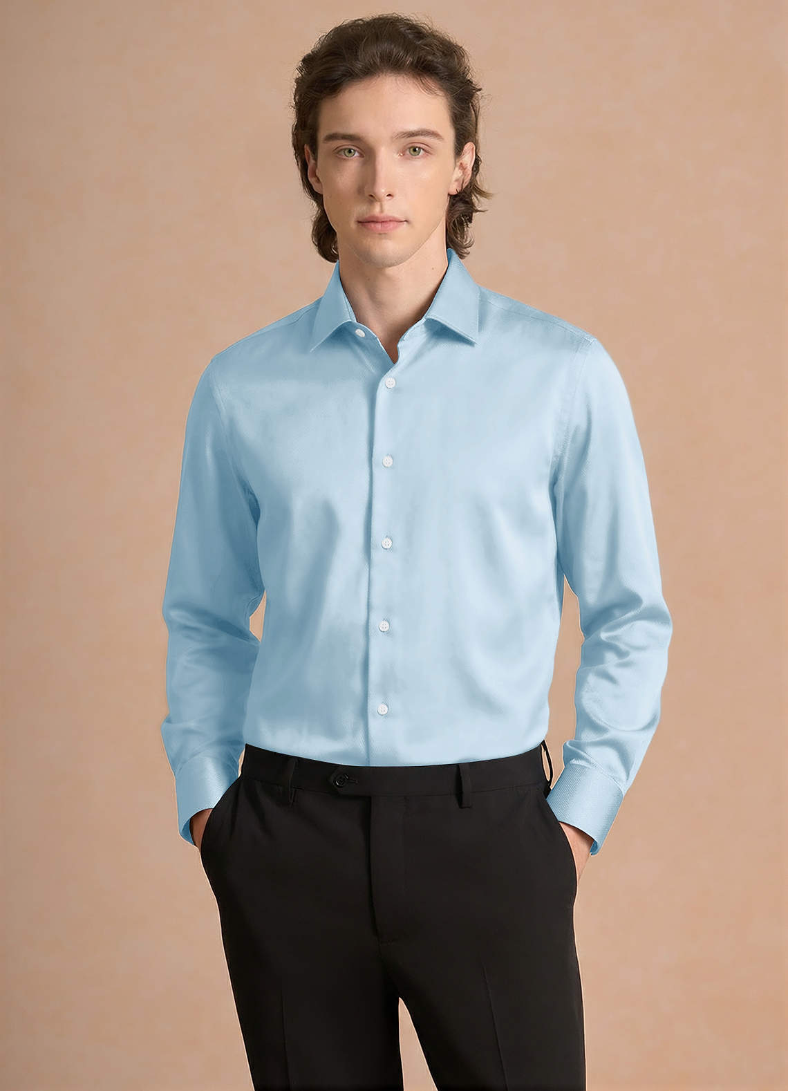 Julian Sky Blue Stretch Satin Dress Shirt