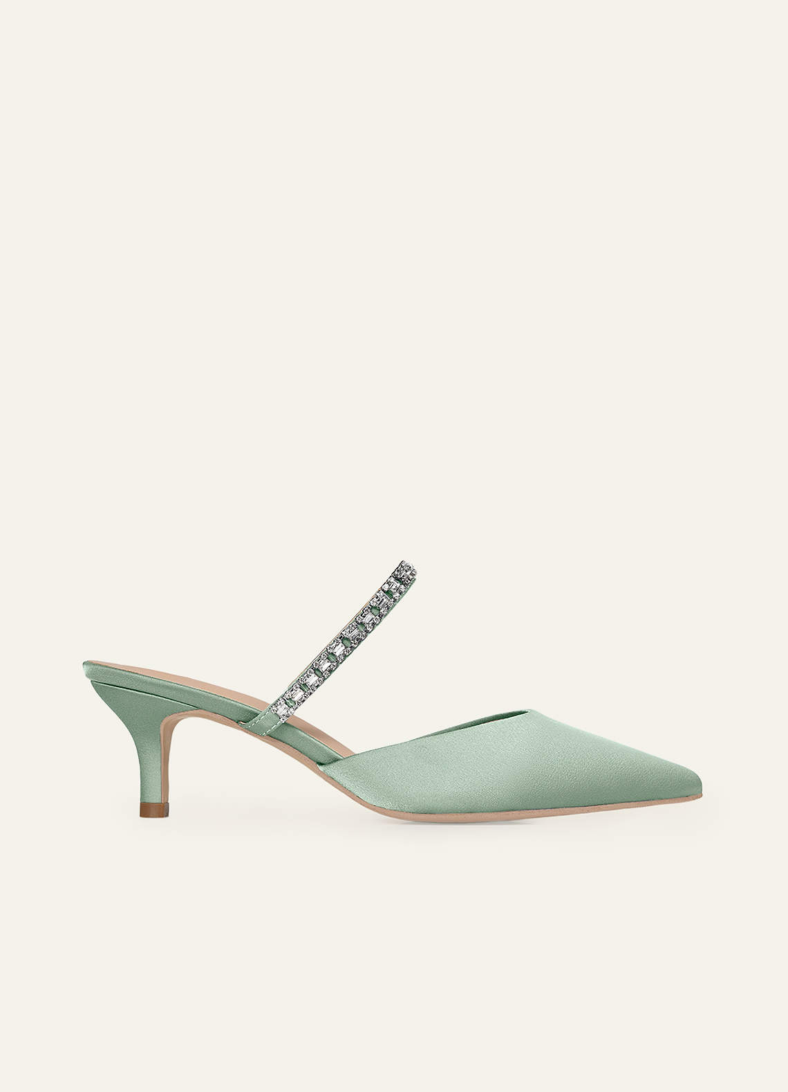 Matching Color Stretch Satin Rhinestone Slip-on Kitten Heels
