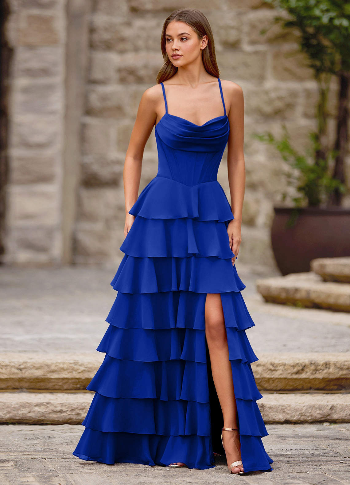 Rhythm Royal Blue Ruffled A-line Prom Dress
