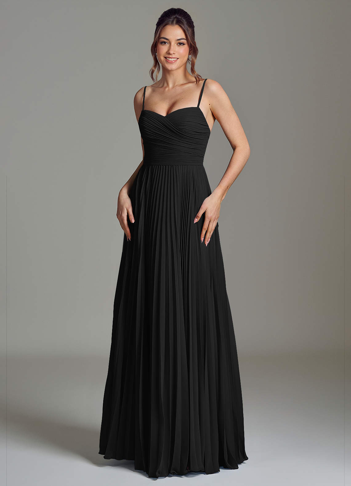 Black A-Line Sweetheart Neckline Chiffon Dress