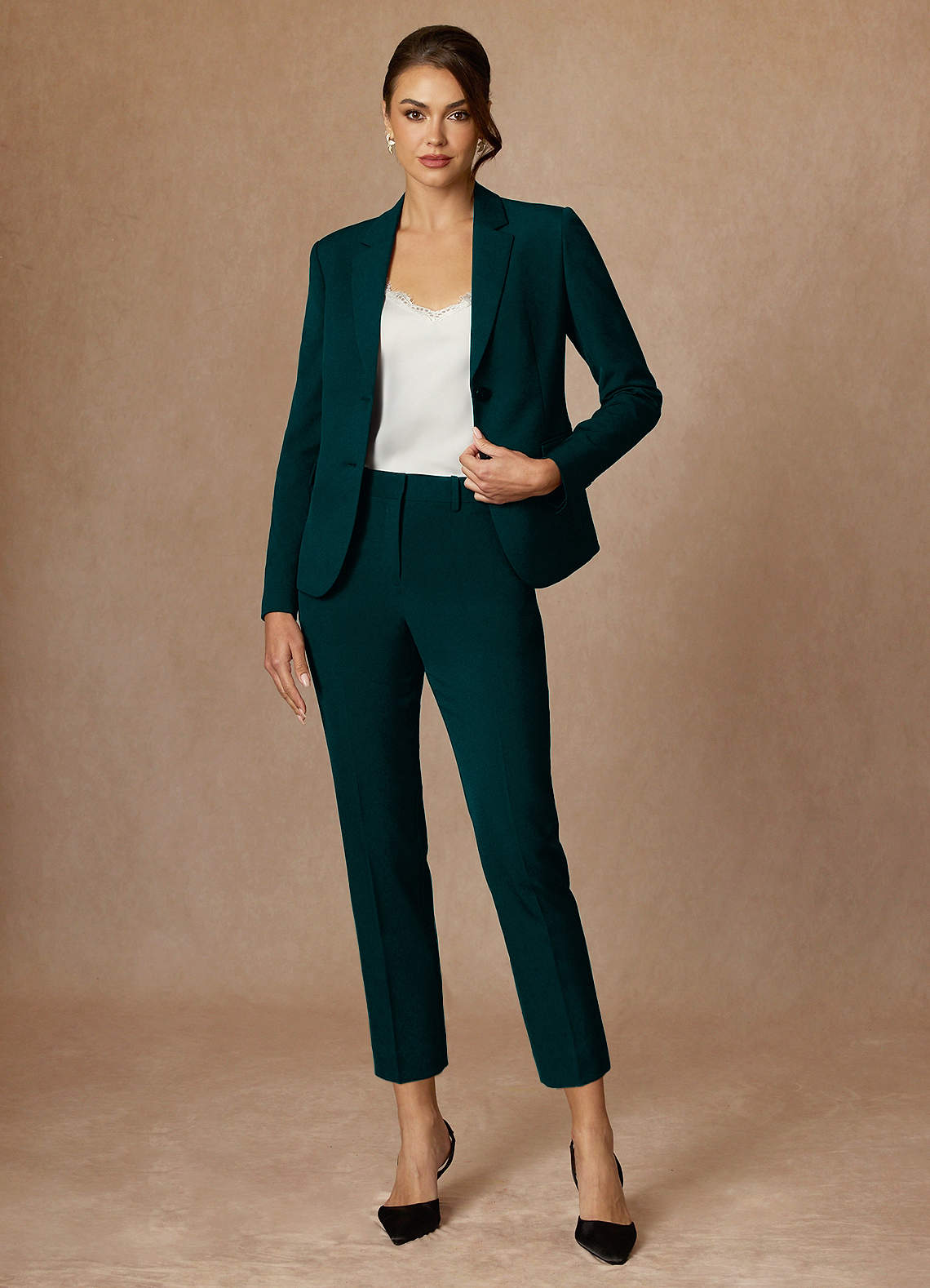 Whitney Pine Refined Weave Performance Cropped Pants Suit
