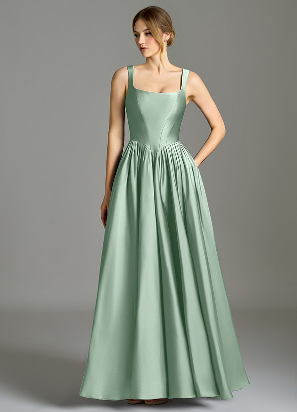 Abito A-Line in Raso Elasticizzato Plissettato Matcha
