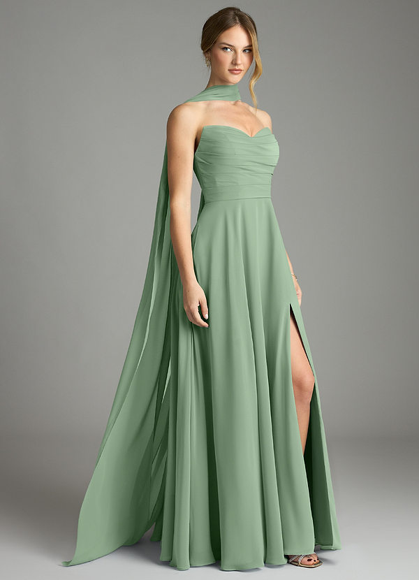 253 Articoli Abito A-Line in Chiffon Scollo a Cuore Matcha