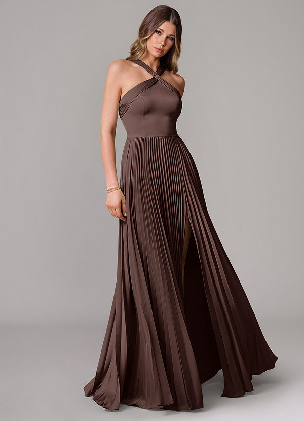 Abito A-Line in Raso Elasticizzato Plissettato Espresso
