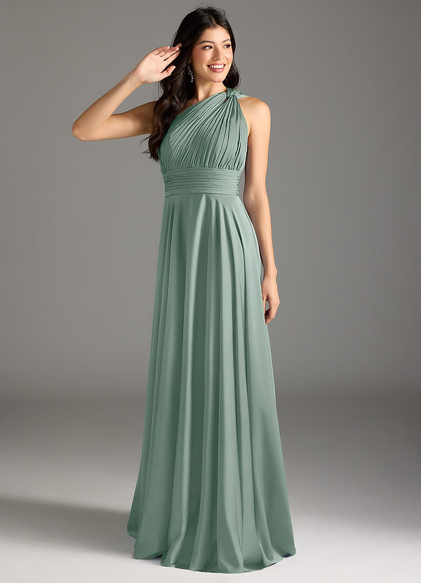 486 Articoli Abito A-Line in Chiffon Monospalla Azzurro Polvere