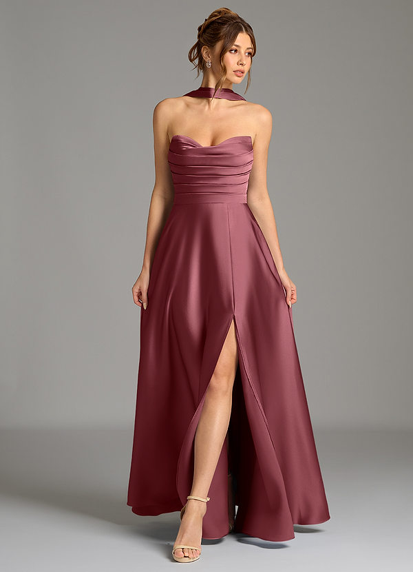 89 Articoli Abito A-Line in Raso Elasticizzato a Spalla Scoperta Gelso