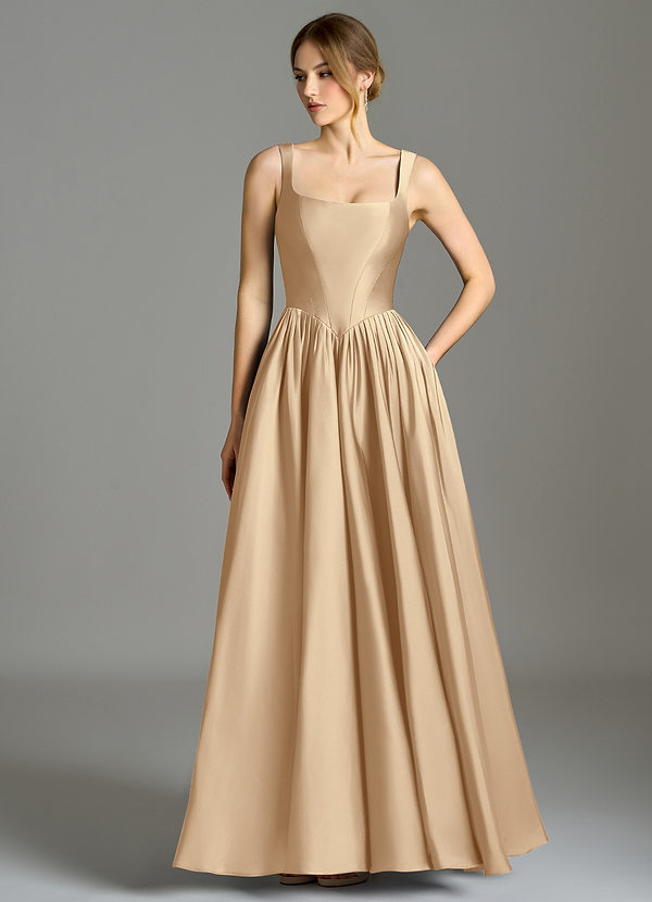 Abito Convertibile A-Line in Raso Metallizzato a Spalla Scoperta Champagne