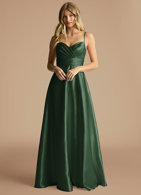 Abito A-Line in Raso Metallizzato Scollo a Cuore Eucalipto