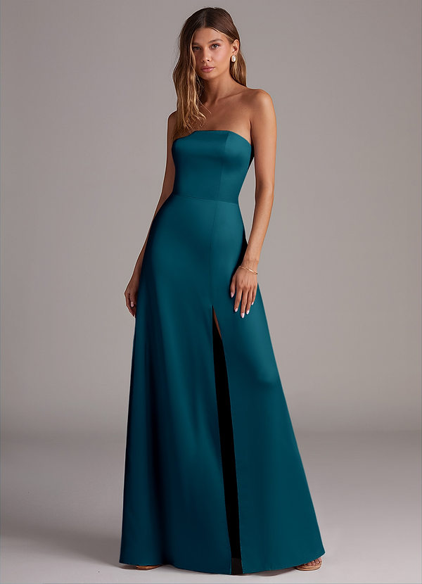 Abito Convertibile A-Line in Raso Elasticizzato Senza Cinturino Blu Inchiostro
