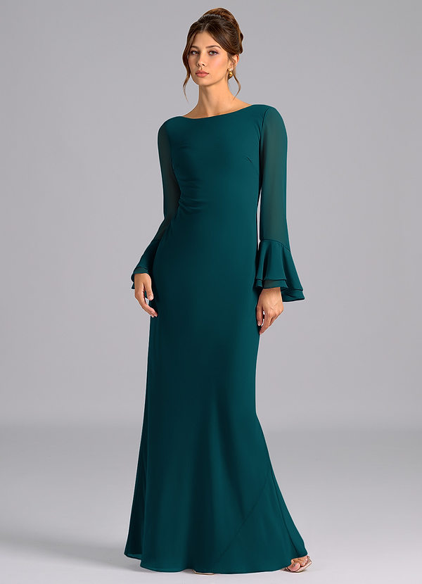 Abito Sirena in Raso Elasticizzato Manica Lunga Agave