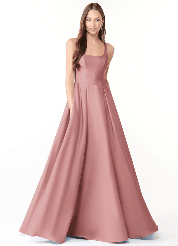 Abito Principessa in Raso Elasticizzato Con Tasche Rosa Polverosa