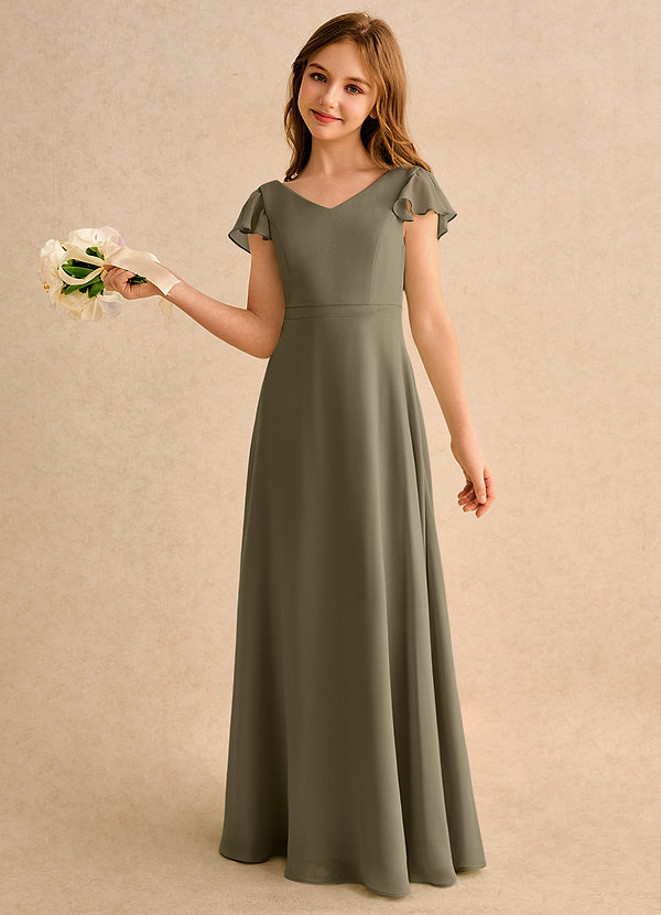 Abito A-Line in Chiffon Con Maniche Willow Green