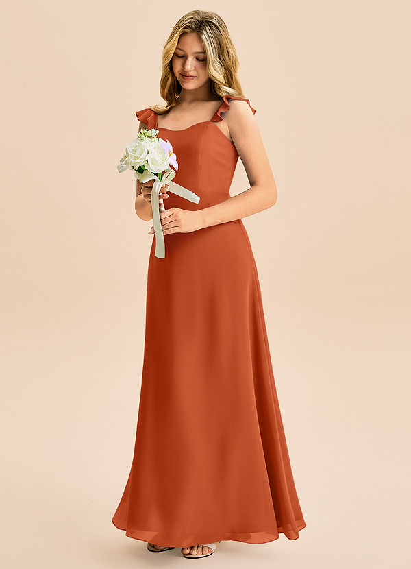 Abito A-Line in Chiffon Scollo a Cuore Arancia Bruciata