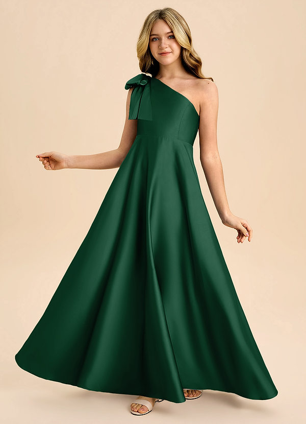 Abito A-Line in Raso Elasticizzato Fiocco Verde Scuro