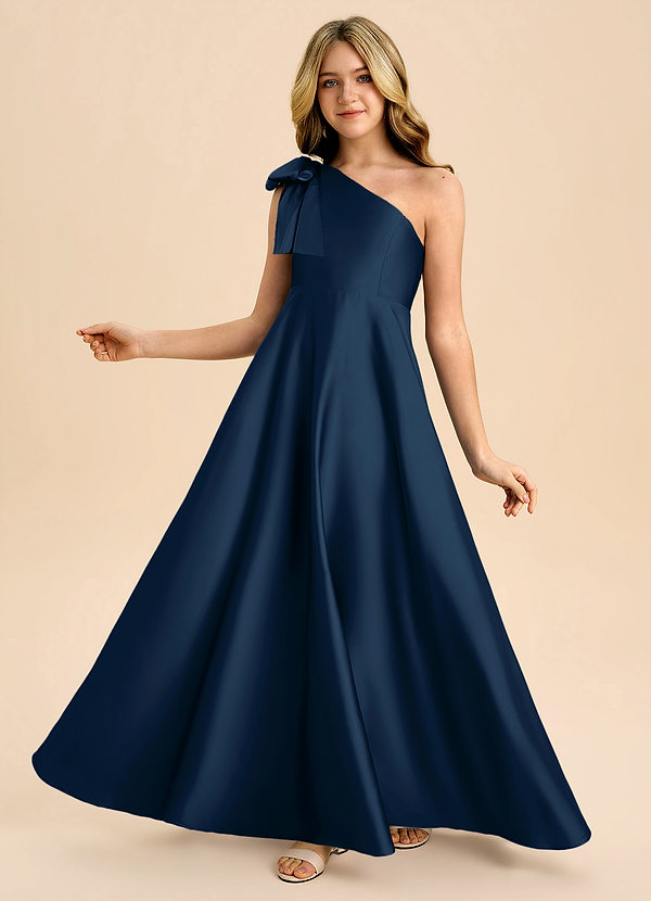 Abito A-Line in Raso Elasticizzato Fiocco Marino Scuro