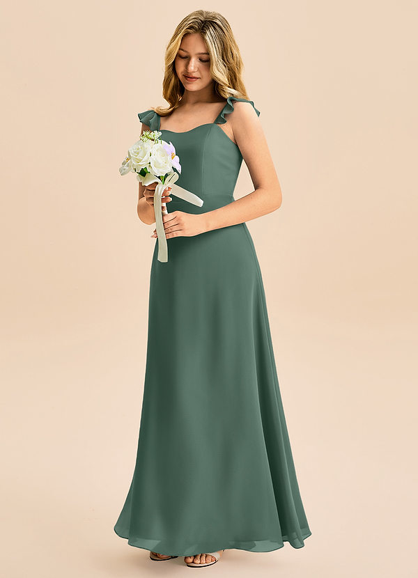Abito A-Line in Chiffon Scollo a Cuore Muschio Marino